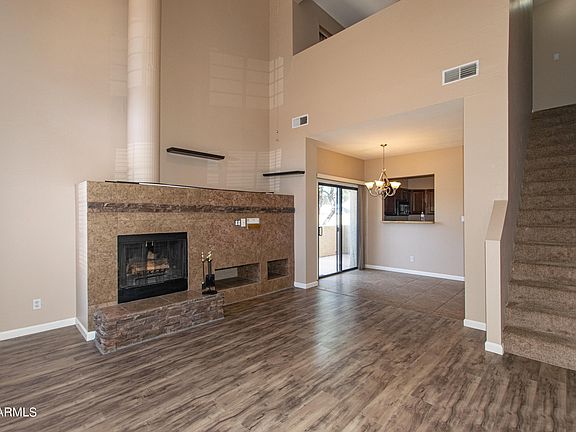 Welcome Home!!! This gorgeous 2 bedroom 1.5 bath townhouse at Elliot Place in Chandler is in a fantastic location. Close to restaurants, shopping, schools, parks & easy access to the 101 Fwy. You'll love the layout of this home. Your kitchen offers laminate counter tops, black appliances, a breakfast bar & plenty of cabinetry for storage & organization. Your spacious upstairs master suite offers a plethora of natural light, a vanity & a shower/tub combo. This home also offers new carpet, new interior paint, a new water heater, a refinished bathtub, upgraded ceiling fans, as well as a stunning tiled wood burning fire place, an upstairs laundry, a 2nd bedroom that can be used as a loft area, a half bathroom downstairs & a front security door for your privacy. Another bonus is a 1 car garage & a private parking slab, along with a patio area, community pool & spa to enjoy. This gem in the desert is a Great Buy & a Must See!!!