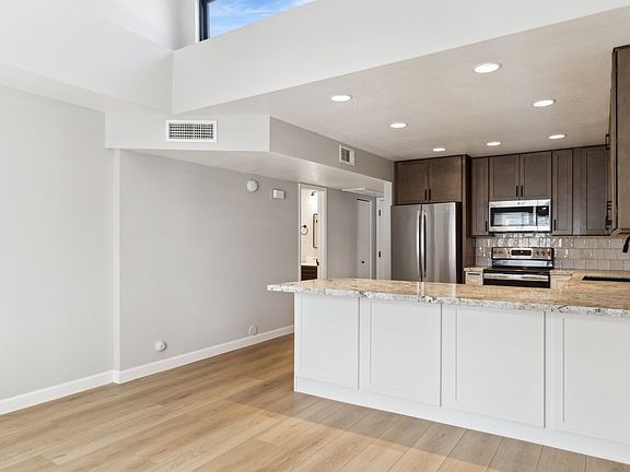 Completely remodeled! New HVAC system for lower utility bills, new- sound proof- dual pane windows, New flooring, Remodeled bathrooms, cabinets, top end appliances. 2nd bedroom has skylights that open. One car attached garage. 2 bedroom 2 bath w/ separate small office area. Private balcony, custom granite counters. Vaulted ceilings, light and bright. Master suite has large walk in closet, custom remodeled walk in shower and bathroom. Full size washer and dryer in condo. Community pool and spa. Must see! Tenant pays water sewer and trash along with electric. $399 non refundable cleaning fee. $1899 refundable deposit, $50 admin fee, and $90 application fee. No Zillow apps. Renters insurance is required. 12 month min lease. Second floor unit. One car garage with direct access to condo. Quick maintenance! FIRST MONTHS RENT, DEPOSIT, CLEANING FEE, APP FEE AND ADMIN FEE DUE PRIOR TO MOVE IN.