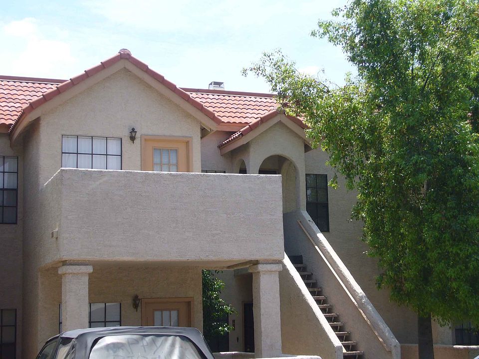 This 2 bedroom, 1 bath condo comes with vaulted-ceiling, bamboo flooring and painted accent walls throughout. Additional features include an attached garage, clerestory window in the living room and a small den that leads to the front patio. Bathroom was refurbished in 2016 with new tub, toilet and ceramic flooring. Amenities include dishwasher, microwave, refrigerator, oven/range and washer/dryer. Close to community pool and spa. Conveniently located near supermarket, retail stores and restaurants. Easy access to AZ-101 and US-60 freeway. No smoking and no pets allowed. Unit will be available on July 15th. Tenant is responsible for all utilities (electricity, water, gas, internet and cable). $939 security deposit, $34.95+$1.99 Application Fee/Credit Report.
