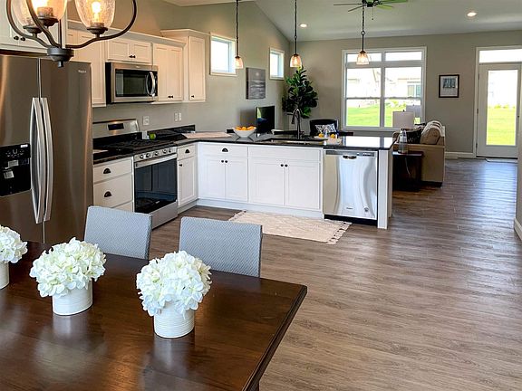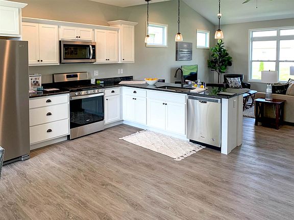 This smartly designed villa home with 'The Bella II' floor plan is by Devine Homes by Miller in the Villas at Reverewood, offers 2 bedrooms and 2 full bathrooms. With 9-foot sidewalls, transom windows, and a vaulted ceiling, the Family Room is spacious and inviting. It opens into the Kitchen, which features granite countertops, breakfast bar, stainless appliances, and a dining area. The first floor Master Suite has a walk-in closet and master bath with double sink vanity and a walk-in tile shower. The additional bedroom (or den) has nearby access to the other full bathroom with a tub/shower combo. The mud room off the garage completes the main level living space. The full basement is ready to finish with an egress window and rough-in for a future bath. The yard will be sodded with an irrigation system and landscaping in the front of the home. A 12' x 12' rear patio is included. The villa maintenance will include lawn mowing and snow plowing. This neighborhood features city water and sewer, is walking distance to Hums Elementary School, and has easy access to the US 20 bypass and Capital Avenue.