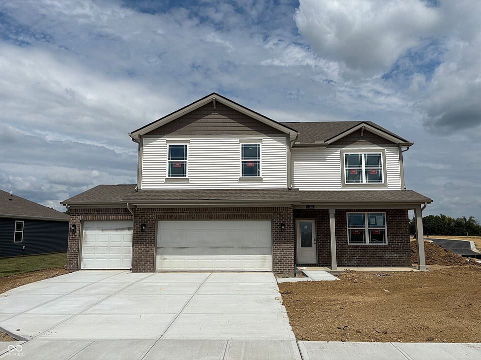Welcome to the enchanting Henley in Winterfield, a two-story masterpiece that effortlessly blends modern convenience with timeless elegance. This charming abode boasts five expansive bedrooms and three luxurious baths, with the unique advantage of a bedroom and full bath conveniently located on the main level-a perfect retreat for guests or multi-generational living. The heart of this home, the kitchen, is a culinary dream come true. Imagine preparing gourmet meals surrounded by pristine white cabinetry, gleaming quartz countertops, and a generous pantry. The built-in island, with its ample seating, becomes the ideal gathering spot for family and friends. Venture further into the main level to discover a spacious study, offering a serene sanctuary for work or creativity. As you make your way upstairs, you'll uncover four additional bedrooms, each thoughtfully designed, including one with a luxurious walk-in closet. The second living area unfolds as a versatile space, perfect for lively entertainment or cozy movie nights. This home is located on a corner homesite and features full brick wrap on the first floor. Like all D.R. Horton homes, the Henley is equipped with America's Smart Home Technology, featuring a smart video doorbell, a sophisticated Honeywell thermostat, a secure smart door lock, and intuitive Deako light package. This delightful community is ideally situated near daily necessities and major routes like I-65 and U.S. 31, allowing you to reach downtown Indianapolis in just 30 minutes. Experience the charm of small-town living alongside the vibrancy of city life. Franklin, Indiana, offers visitors a wonderful mix of history and modernity. Explore local vintage shops to connect with the town's past, indulge in the luxury of national retailers in charming downtown Franklin, or tee off at the Legends Golf Course, conveniently located just across the street from Winterfield.