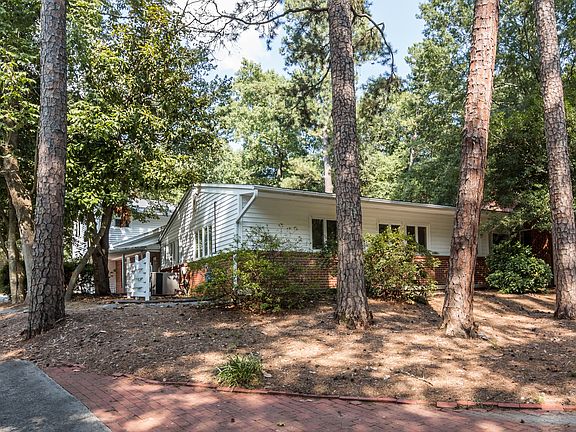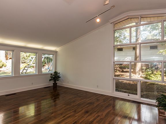 This Modernist home in the heart of Duke Forest has been expanded and updated to suit today's lifestyle. The open floor plan features high ceilings and architectural windows grounded by gleaming floors. The open living room is anchored by a masonry wall and woodburning fireplace that connects the living room and cozy den. The living room flows effortlessly into the dining and out to the patio and backyard through french doors and a wall of windows.