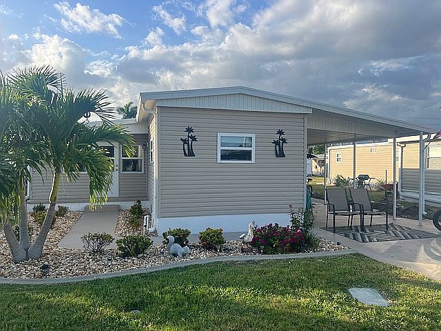 Everything new on this home in Bayside Estates. Completely gutted and remodeled after hurricane Ian. Passed all inspections with closed permits. 2 bedroom, 2 full baths. Laundry, storage, lanai w/air conditioning offers additional living/sleeping area. Ride your bike to beaches, just over 2 miles away! Bayside Estates is a well maintained 55+ community with low HOA fees and many amenities. HOA fee includes water and sewer, trash pickup, lawn service, and internet! Clubhouse w/ ice machine, pool, tennis courts, pickleball courts, shuffleboard, horseshoe pits, bocce. Wide streets, canals with direct gulf access, close to shopping, restaurants, etc. $279,000 No real estate agents.
