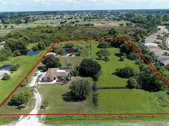 Rare and Highly Desirable 5 Acre Single Family Estate Home with a pool that is centrally located to everything is available now! Get the best of both worlds as the home is located in Unincorporated Lee County with Pine Island Water but is located in the prime area of SW Cape Coral. The Features of this estate are: 3 Beds, 2 Baths, Over 2,100 Sq Ft of Living area, Pool with Screen Enclosure, Plenty of outdoor living with 5 total acres that includes a private pond, Gazebo, dock, 2,000 sq ft Barn/Garage with plenty of privacy. Don't need all 5 acres? Purchase this estate and work with Lee county to split the property and then sell the other 2.5 acres - could make a great investment for someone! Call today for your private showing.