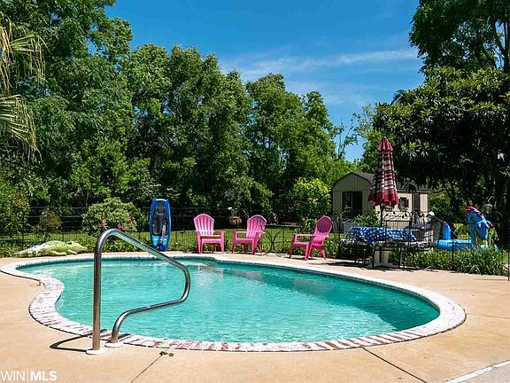 Rare Fairhope find! No HOA dues or restrictions. This fantastic home sits on nearly 3 1/2 acres nestled just east of Highway 181. If the open floor plan and no carpet wasn't enough, this brick home boasts an inground gunite swimming pool with awesome tiki patio as well! Highlights include a large island kitchen with breakfast nook, tile and wood flooring throughout, fresh interior paint, security system, brand new (April 2020) pool pump, city sewer not septic, large outdoor storage shed! This home has been very well-maintained. The homeowners have current termite bond and twice yearly AC service contract. Schedule your showing today.