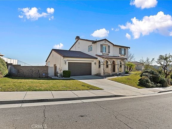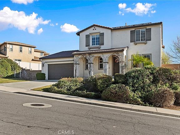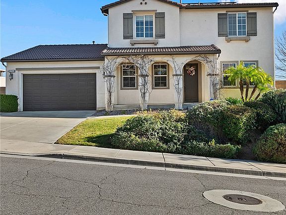 ABSOLUTELY STUNNING! Look no further . . . for you have arrived! This show-stopping, PAID FOR TESLA SOLAR-powered home has been impeccably upgraded with high-end amenities. This two-story home sits on a huge 10,019 sf lot with amazing views of Mt. San Jacinto. Architecturally appealing with arched entryway complemented by colorful, seasonal bougainvillea, the STAR of the show is the magnificent BRAND NEW gourmet kitchen!! No detail was left unturned in its remodel with stainless steel KitchenAid appliances including beautiful Quartz counters, Carrara Marble backsplash, large fireclay sink & white shaker soft-close cabinetry with brushed gold hardware. Storage was definitely NOT forgotten in the cabinetry design, including concealed end-cabinet USB electronic charging ports, custom trash bin drawer & concealed paper towel holder, as well as different pull-outs for spices and even hiding your dish brush & sponge. The walk-through Butlers pantry has storage galore, including a walk-in pantry with built-in space for a beverage fridge. The kitchen opens up to a great room with a mantled fireplace (with gas option) and hidden in-wall TV outlets complete with surround sound speakers! The wood-plank porcelain tiled main floor also includes a bedroom & beautiful full bathroom, perfect for guests or extended family living. Luxuriate in your ensuite oversized primary bedroom with captivating west-facing sunset views. The upstairs laundry room features a large sink, upper cabinetry, a built-in ironing board, & drying rack! BONUS- theres a tech center with a full wall of cabinets, a perfect place for homework or home-office space. Drink your morning coffee while listening to the tranquil sounds of the water fountain while sitting under the large covered patio with seasonal gorgeous wisteria vines, string lights, & built-in speakers. The Extra deep 3 CAR TANDEM GARAGE includes two pre-wired 50 AMP electric car/workshop/compressor zones, and even a built-in ladder for attic access complete with walkable floor, lighting, and MORE storage! AND SPACE FOR SIDE YARD RV PARKING! The extensive TESLA SOLAR saves you over $6,500/year!!! Fairway Canyon Community offers low HOA dues, many activities, and resort-like amenities including high-speed internet, pools, & fitness center. Conveniently located near shopping, schools, and freeways, you won't want to miss this one!