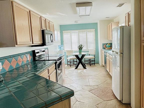 Breathtaking pool views, open floor plan & recent updates! This spacious 1553sqft 2 bed/2 bath condo is a must see! The original model unit, it has the best views in the complex of the pool, hot tub, tennis courts & amenity area. It is also the only unit with a private driveway. It has a Southwestern flare & features high ceilings, lots of light, a fireplace, large closets & a private attached garage. Updates include new Whirlpool appliances, HVAC '20, Ht Wtr htr '19, & fresh interior paint. Located in the highly amenitized Scottsdale Mission condo complex, this unit is in a prime location of Scottsdale. It's less than 1 mile of shopping, the hospital & 101 access. The HOA amenities include 2 pools, spa/hot tub, tennis courts, clubhouse, exercise room, & BBQ grills. Come see it today!