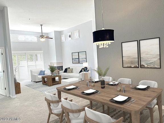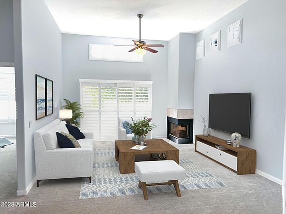 Rarely available light bright townhome/condo has been completely updated. As you enter the home, you will notice right away the small details of this home. Granite has been added to ''drop zone(s)'' shelving as you make your way to the living area. Kitchen cabinets, backsplash, & quartz counters all brand new! New plantation shutters on EVERY window. Huge living/dining area w vaulted ceilings and rare wood burning fireplace. Large guest bedroom with walk-in closet has quick access to completely renovated hall bath. Huge primary bedroom is highlighted by gutted & upgraded bathroom. A double vanity sink leads to a massive walk-in shower. Garage/garage floor freshly painted with sealed floor! Banner Health hospital, plenty of eateries, golf & 101 access all within a mile.