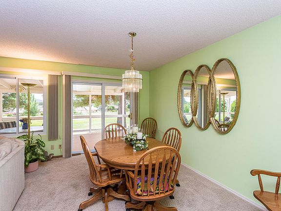Beautiful home with panoramic views on the golf course. Updated home with all newer tinted windows and sliding doors. Large entry way leads to open living room filled with a wall of windows that overlook the 7th green of the golf course. Eat-in kitchen features Sub Zero refrigerator, Bosch electric stove, and solid surface counter tops. Master bedroom with walk-in closet, master bathroom with step-in shower. Covered wrap around deck with composite type deck flooring to sit and enjoy the beauty of the golf course. Two car garage with work bench, separate golf cart garage, all garages have loads of storage with many shelves. Outside of home has been recently painted, new air conditioner in 2014, new roof in 2010, 2004 all new dual tinted windows installed