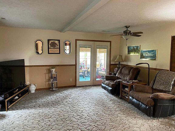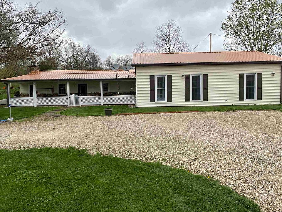 Ranch home on 1 acre in a peaceful location. All on one level, this home offers large rooms, Amist built cabinets with granite countertops, stainless steel appliances. Geothermal heating/cooling. Metal roof, enclosed porch to enjoy your coffee, plus an additional porch in the front of home. The detached garage can hold 3 cars is currently being used as a workshop area and a "to die for" Mancave with open finished living space that includes a half bath, heated & cooled with a bar, sink, stove and a large area for entertaining. Upstairs offers an office space with ample attic storage. Coveniently located close to Crane and I69 Interchange and Bedford and Bloomington.