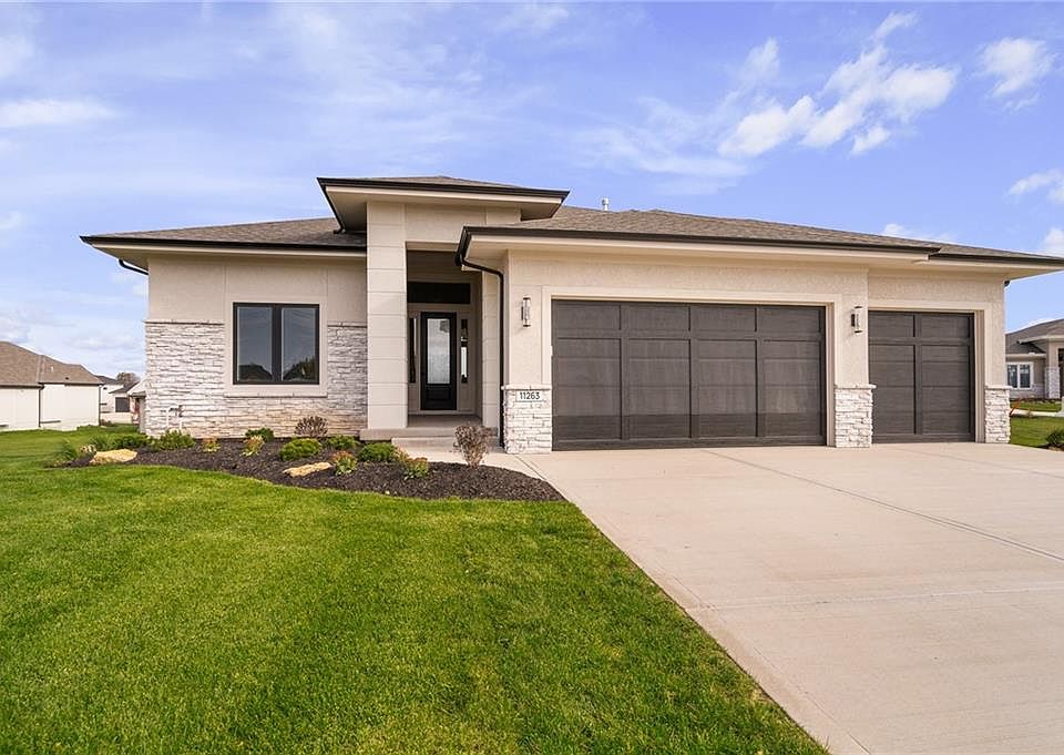 Pauli Homes brings their popular Sicilian 2 plan to Johnson Counties newest maintenance provided community, Prairie Canyon! Conveniently located just west of K-7 off of College Blvd.! This fabulous Rev. 1.5 sty. is on a cul-de-sac, perched on a ridge, backing east with extended beautiful views! Open concept: Great rm / Dining / Kitchen w/spacious island, large walk-in pantry, FP & includes a versatile 1st flr. guest rm. or Den. L-shaped lower-level design allows for plenty of recreation space & family/media area plus 2 bedrooms w/a share bath. Exceptional quality & value you've come to expect from from Pauli Homes in a signature Prime Development Co. Community!