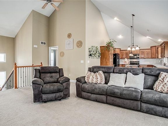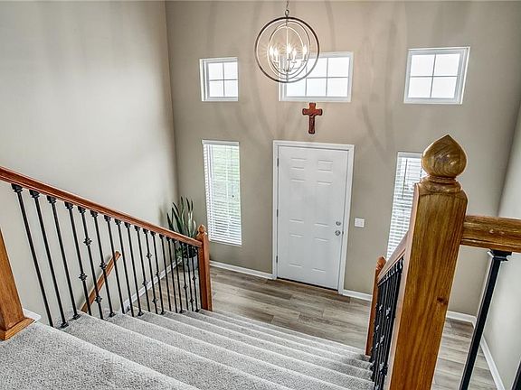 Talk About an Entertainers Dream with all this hosting space in back that offers TWO entertaining levels with one being the deck on the kitchen and then the oversized patio. The perfect amount of privacy for entertaining. This meticulously maintained home features 4 bed 3 bath 3 car walkout garage and finished walkout basement! This home is perfectly situated just 10min to MCI and 20min to downtown Kansas City making it an easy commute in and out of town.  Cool off in the neighborhood pool this summer or watch the kiddos play at the neighborhood playground.Nothing to do but move in! This home has had recent complete updating including complete interior paint, iron spindles, granite countertops, backsplash, basin sink, all refinished cabinets, updated flooring throughout most of the home, new roof and gutters the in Jan '21. HVAC and all toilets replaced in Dec '20. Beautiful interiors and an outdoor oasis you won't find in this price range!