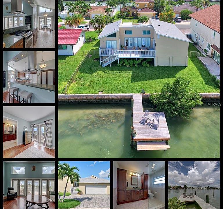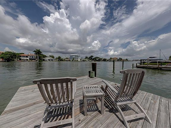 LovelyElevatedWaterfront Home located in the quiet Isle of Palms Community in Treasure Island.Through the frontdoor you enter thelargeLiving Room area with vaulted ceilings looking out onto water through French doors which lead to large deck for entertaining.This home also features 3 bedrooms and 2 full bathrooms. The Master Bedroom Suite has a walk-in closet, master bath with shower.In the MBR there are French doors leading to outside waterfront deck with excellent views from Master Bedroom. 2 Bedrooms and guest bathroom are also down the hall from Master.The kitchen is an open airylivingconceptwith a large breakfast bar, granite countertops and breakfast nook, all with waterfront views. There is also a separate dining area next to kitchen for more formal sitting. An elevator is also featured which brings you up from ground level for your convenience which opens into LR.The waterfront deck faces a large backyard and walk out dock for your boating, fishing and relaxing enjoyment. Thiselevated home gives you much lower flood insurance premiums than ground level.Pavereddriveway leading to a2 car garage.