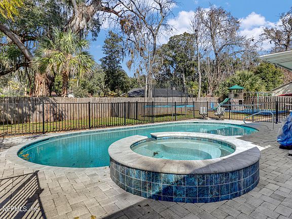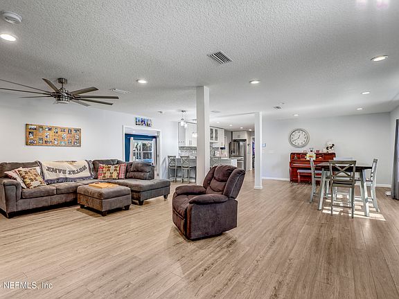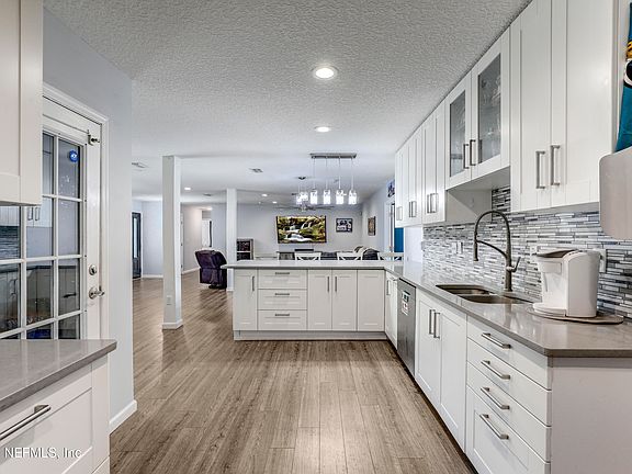 **WATERFRONT COMMUNITY **POOL HOME **REMODELED **This stunning 2,460 sqft home in a desirable community offers 4 beds and 3 baths, w/ non conforming 5th bedroom perfect for MULTI-GENERATIONAL living with an IN-LAW SUITE. Completely remodeled in 2017, this SMART HOME seamlessly blends modern luxury with practical upgrades. Enjoy a chef's kitchen featuring quartz countertops, white shaker cabinets, stainless steel appliances, and a stylish backsplash. Luxury vinyl plank flooring flows throughout - no carpet! Energy efficiency is maximized with SPRAY FOAM INSULATION. Smart home integration, appliances, a WATER SOFTENER, and TVs (INCLUDED WITH SALE!!) enhance convenience. An 8YR OLD ROOF, generator hookup, washer, dryer, and deep freezer add practicality. The oversized 2-car garage and pool with footer for a screen provide ample space and relaxation. Recent updates include all new windows/doors (2017), electrical (2017), repiping (2018), and a new HEATED POOL (2021). A HARD-WIRED SECURITY SYSTEM, full house/pool lighting, and mature oak trees on a QUARTER ACRE LOT create a private oasis. While there's NO HOA, a voluntary HOA of $35/year exists, with an optional $65 annual PRIVATE BOAT RAMP ACCESS fee. Don't miss this amazing opportunity!