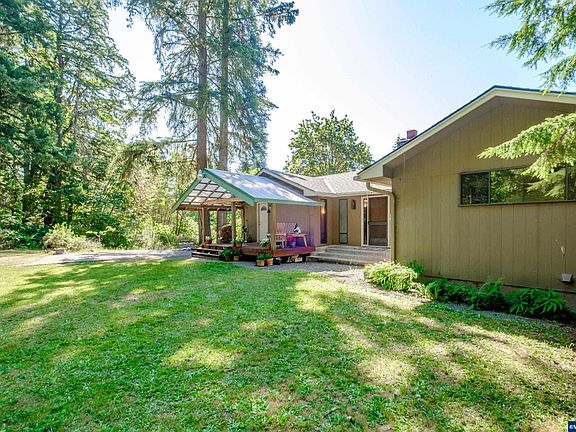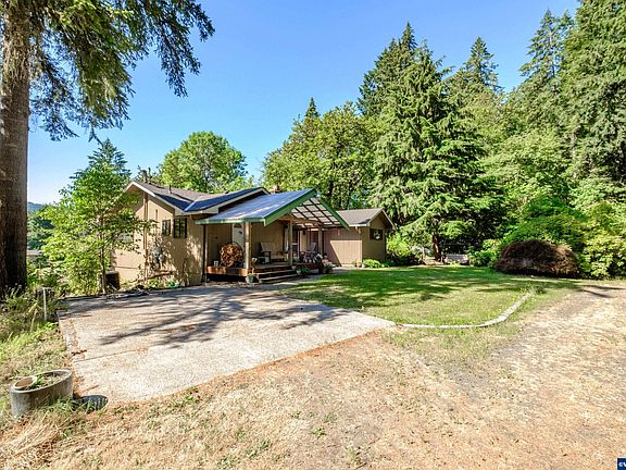 Own a private forest! So much beauty in the majestic firs that blanket this 8.63 AC parcel. The deer seem to be a friend. Birds are soaring high. Over the bridge & through the woods, sits a home all set up for dual living. 2 floors, each consisting of 2 bedrooms, kitchen & living area. Basement level is daylight with slider access. Furnace & heat pump are powered by owned solar. Each floor offers a woodburning fireplace. With some updates, you will have yourself quite a homeplace! Seller licensed RE agent.
