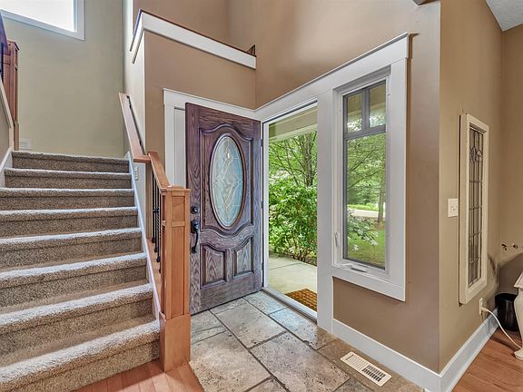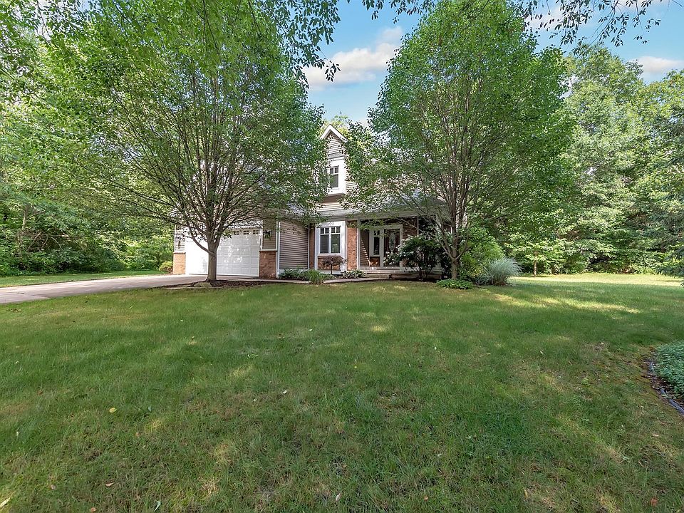 This beautiful home on a wooded lot in Rockford is a MUST SEE (did I mention on a cul-de-sac?) This home has been well cared for and maintained - built in 2005. Walking through the front door you'll set foot onto hard wood flooring to a large foyer. Home features open yet traditional main-floor with plenty of living and entertainment space. Enjoy your custom built 3-way fireplace and exceptional wood work and pillars throughout. Kitchen is large and spacious for those who love cooking. The second floor you'll find 3 Bedrooms, laundry room, and also features the primary 4th bedroom which is a suite with walk-in closet and private bathroom with whirlpool tub. Basement is plumbed for additional bathroom and could offer additional living/entertaining space. Many trails and great location! Sq footage to be verified by buyers/buyers' agent and is approx