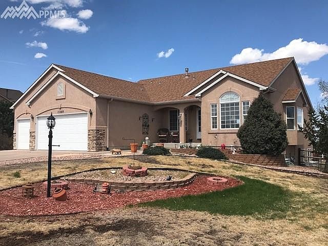 Welcome to this 4 bedroom, 3 bathroom home with an oversized 3-car garage in Paint Brush Hills! This location offers D-49 schools and is only 20 minutes from Colorado Springs and 60 from Denver. The home is well appointed with architectural ledges, high vaulted ceilings, A/C, newer hot water heater, professional landscaping, fenced and small dog ready, two sheds, colored concrete patio that is perfect for entertaining and an 8x10 wood deck! Formal living & dining plus family room & laundry on mail level. Park your RV here The main level provides the formal living, kitchen and dining area, family room, master retreat with 5-piece bathroom, and two secondary bedrooms with full bathroom. The partially finished, garden-level basement offers a second family/recreational area and 3/4 bath. The huge yard provides mountain views, patio, deck, and two storage sheds. Immaculately maintained and tre pride of ownership