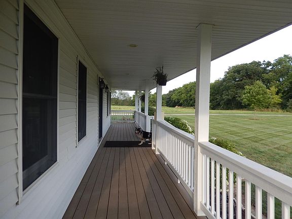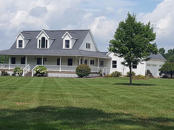 Country Cape Cod you've been waiting for. Porch wraps around the house on 3 sides with sunset views of 4 mile lake. Rear deck for additional entertaining space. Unique open floor plan offer 2 beds, 1 bath on main level. Owner's suite up has custom bath w/jetted soaking tub, separate shower. Large sitting room/office and separate sleeping area. A beautiful view from every window. Walk-out basement is plumbed for bath and ready to finish. Separate entrance to workshop/office above 3 car garage. This is a custom one of a kind home with fresh paint, move right on in and enjoy the fall colors and gas fireplace.
