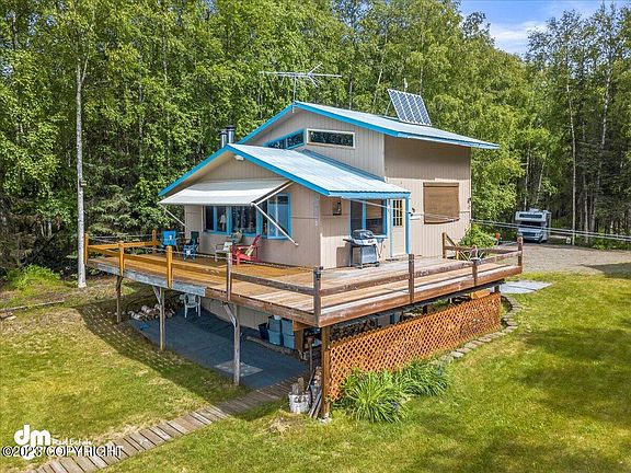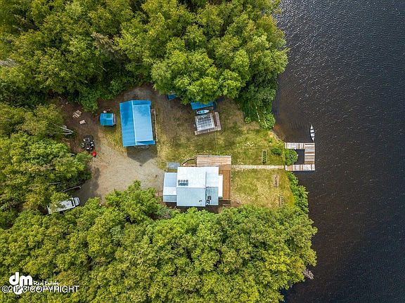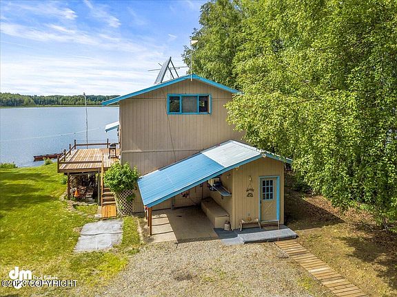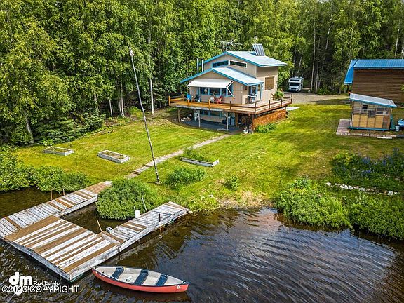 Amazing Recreational Cabin on 131 Ft of Vera Lake Frontage- a Motorized Lake! Enjoy summer floatplanes, jet skis, boats, fishing, & swimming; winter snow machining & Iditarod viewing from your own dock! Darling Cabin w/Large Loft Bedroom & Lake Views, Large Kitchen w/Deck Access, Great Room, Arctic Entry, Full Bathroom, Laundry Room. Solar Panels, Wood Stoves, Generators. HUGE Detached Shop ...Heating Sources: *DR Series Power Inverter/Charges- solar powers on roof charge battery bank (16 batteries), can power all low energy needs *Flip a switch and Diesel Generator kicks in for full house power needs! *Oversized Blaze King Wood Stove in Lower Level and on Main Level *Propane Tanks for additional power needs *Humphrey Lights- propane powered for light & they give off 8000 BTU's each of heat Main House Layout: *Arctic Entry *Upper Level w/Large Fully Stocked & Equipped Kitchen; Large Gathering Room w/Lake Views; Wrap Around Deck; Full Bathroom w/Shower/Tub Combo, Toilet, Sink *Bedroom Loft above Upper Level- all Tongue & Groove walls/ceiling w/Lake Views! *Lower Level-Laundry Room w/Stackable Washer/Dryer, shower pan (not currently in use); Bunk/Gathering Room w/2 bunk beds, large pot belly stove, Lake Views; Bedroom w/Side of house views Outbuildings: *Detached Garage/Workshop (620 sf)- poured concrete foundation, cozy upper level loft (240 sf)- great extra guest/sleeping area! *Wood Fired Sauna *Greenhouse- powered by separate generator *Wood Cutting Station behind Workshop/Garage (not covered) *Outhouse (full bathroom inside house)- great for lake day use! *Generator Shed- houses 12 KW diesel engine generator Current owners have used for their own recreational use AND have airbnb'd it with success! Being sold fully furnished! Road is city maintained until Vera/Bugbee then neighbors maintain the rest together (no formal agreement, they just all pitch in!).