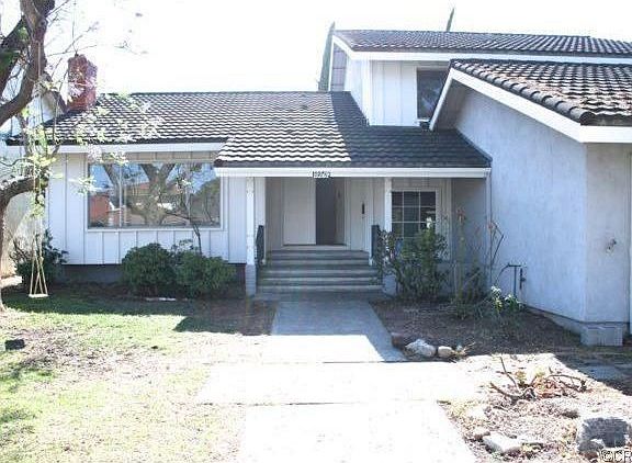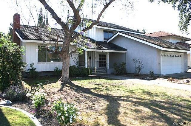 Spacious and bright 5 bedroom 2.5 bath home in exclusive Suburbia Estates of Los Alamitos. Enter to soaring vaulted ceilings and a towering wood burning fireplace in the living room. Master bedroom with en suite bath is on this level as well, sharing the same tall ceilings, well placed windows, and a vast wall of closet storage. Upstairs are 4 more bedrooms and a full bath. Down a short flight of steps you pass through a multi purpose room, great for an office or study; beyond that is the expansive open plan family room and island kitchen. Separate laundry room and half bath are also on this level. Through a sliding glass door is the private yard, secured with concrete block wall fencing, home to several large fruit trees including avocado and tangerine. House has been freshly painted in and out and new carpet has just been laid. A great opportunity to get into a beautiful neighborhood at a rarely seen price. Ready for a buyer to make it their own.