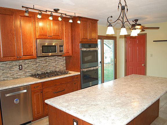 This ranch style home has a lot to offer in a great location! Find yourself enjoying the recently updated kitchen with huge island, tiled backsplash, sweet new gas cook top and dual ovens! The living room, kitchen and hallway have updated tile floors. The main floor also has two bedrooms, den/office and a full bath. Sliding doors off the kitchen open up onto a large back deck. Downstairs has tile floors throughout and you'll have a great entertaining space with electric fireplace, two additional bedrooms, large storage room and another full bath. The open back yard is ready for your landscaping touches and a place to make your own! With newer vinyl windows, newer a/c unit, updated kitchen and great space, it's time to FALL into this wonderful home!