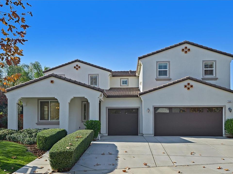 This place is a must see ! Beautiful, 4 bed 3 bath very well maintained home in the desirable gated community of Carmel Estates. Wonderfully landscaped back yard; great for entertaining with fire pit, covered patio, stone work and palm trees all around. Eat in kitchen area features a large island, granite counter tops, gas appliances, and refrigerator. Separate living and dining rooms, with one bedroom and bath downstairs. Upstairs is a large master bedroom with two walk in closets, large tub, two additional bedrooms, as well as a bonus room. Ceiling mounted speakers for entertainment throughout house, and solar panel hook up wiring installed. Finished three car garage, Hunter Douglas tinted windows throughout, indoor gas washer/dryer, and ceiling fans. Close to schools and shopping. This home is ready to go !