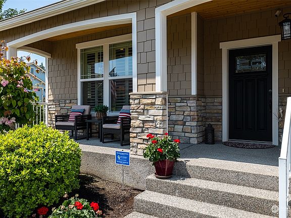 Stylish & immaculate Landed Gentry 'Cap Sante LR' model boasts 2068/sf of open-concept living & extended covered patio for outdoor living. Upgraded top to bottom, including granite counters, hardwood & tile floors, additional closet in primary suite, bathroom upgrades, garage has storage & epoxy flooring. Spacious kitchen w/large island, tons of storage, soft close doors/drawers, pull outs in cabinets, cozy breakfast nook in custom bay window. Step through 8ft French doors to the patio, plumbed for bbq, & private, fenced back yard. Great room w/fireplace & built-in bookshelves. Primary ensuite w/granite & tile, two vanities, linen storage, walk-in closet + add'l closet. Built-in queen Murphy bed in one guest rm. Air conditioning.