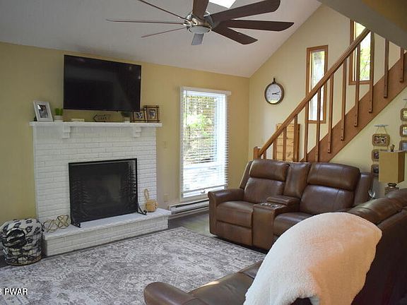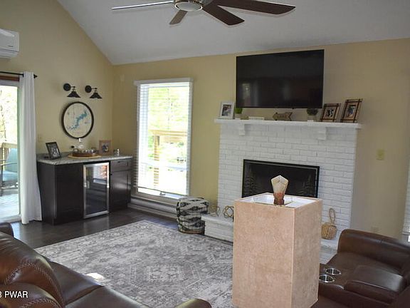 Move in ready contemporary home with 3 bedrooms, 2 baths, open floor plan with plenty of windows to let the sun shine in. Huge back deck, hot tub on side of home to relax in and firepit to enjoy the evening fire and maybe a s'more or two. Propane fireplace in the living room along with a split unit in living room for heat and A/C. Crawl space/basement great with tons of storage. Parking by home and also two spaces at road side. 2 large sheds included. Enjoy the indoor and out door pools, beaches, access to Lake Wallenpaupack and so much more - a true 4 season community., Beds Description: 2+BED 2nd, Beds Description: 1Bed1st, Baths: 1 Bath Level 1, Baths: 1 Bath Level 2, Baths: Modern, Sewer: WS Comm Central