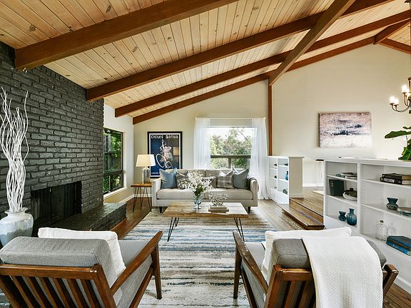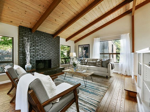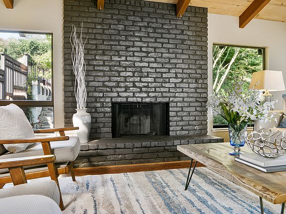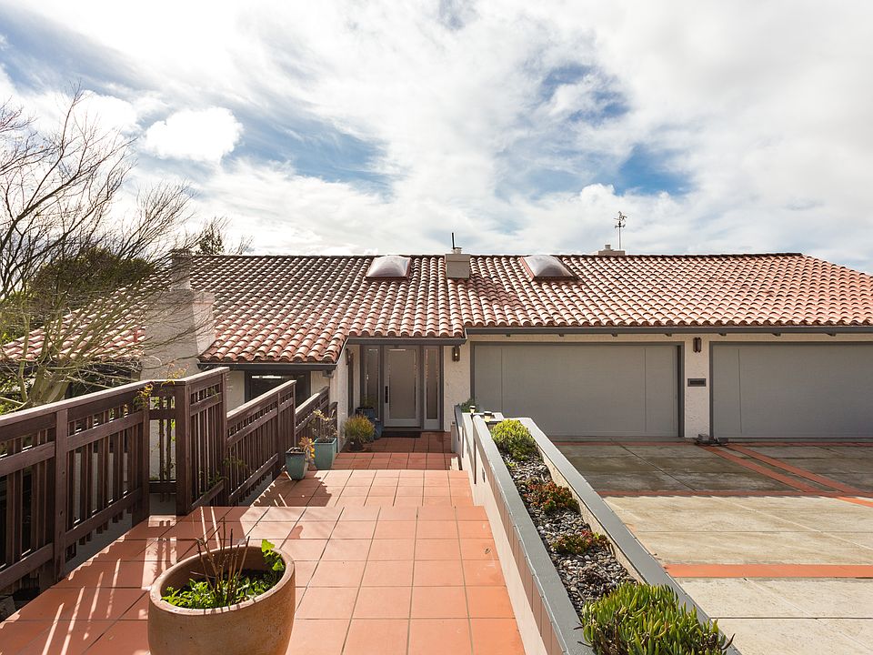 This house is beautiful with amazing views, an unbelievably deep backyard, 4-car garage, and accessible off-street parking. You enter the home on the main level, a perfect place for entertaining. The split-level living room has a fireplace, as well as a formal dining room, an eat-in kitchen and a family room (with a second fireplace), all encircled by a deck that takes advantage of the homes stunning vistas. There is a half-bath off the hallway that leads to the family room and garage. Downstairs, you have the very large and sumptuous master suite, complete with large step-down tiled shower, sizeable closets and deck. There are two additional bedrooms and a shared bath down the hallway. You also find a storage room, a full bath and a huge room that could be used as guest suite. This area has a separate entrance and access to more views through the rear deck. Down a set of stairs with a door that locks is the au-pair unit with a bedroom, bathroom and kitchen / livingroom combination. This room has a small deck with stairs which lead to the enormous backyard. This area is currently rented. Set in a coveted part of the El Cerrito Hills, this home is convenient to Kensington and Berkeley as well as Albany and Richmond - giving quick access to you commute - a superb contemporary home with great amenities.
