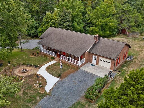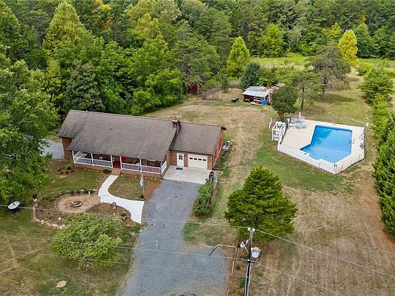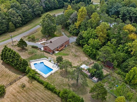 Relax on the peaceful front porch or gather around the fire pit! Spacious living room features a cozy wood-burning fireplace for those chilly winter nights. Updated kitchen is a delightful space with neutral tones, plenty of cabinet and counter space, and room for a dining table. Primary suite boasts a walk-in closet, private bath, and a linen closet. The 2nd and 3rd BRs each have a walk-in closet. In the basement you'll find a expansive den and office. Lower garage includes workshop space and houses the well filtration system, while the upper garage offers parking space to meet your needs. Outside, enjoy the inground pool during the warmer months, as well as large garden area with a coop for keeping chickens and growing produce. Along the trail you'll discover a deer stand for hunting and a small creek on the far back left side. This is truly is a private oasis, offering an abundance of opportunities for enjoyment and adventure. Bring your dreams to life and create beautiful memories.