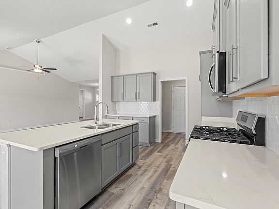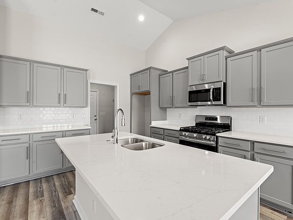- Features: Breakfast Bar, Kitchen Island, Pantry, Stainless Steel Appliances, Solid Surface Counters