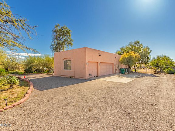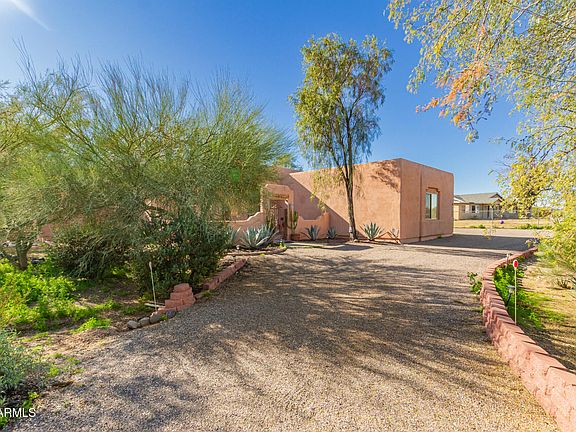 Beautiful Custom 4 bedroom 2 Bathroom Home w/ a 3 Car Garage located on a 1.183 acre lot with a circular driveway surrounded by mountain views! A gated courtyard lined with pavers leads to the covered front door entrance. Through the front door a foyer opens to a great room floor plan w/ ceramic tile flooring and high ceilings overhead accented by a cozy fireplace as well as decorative fans and fixtures. The kitchen is complete w/ granite countertops, wood cabinetry, recessed lighting, stainless steel appliances, a pantry, & a large center island. The primary bedroom features a direct backyard access, an ensuite w/ dual sinks, new walk-in shower, a walk-in closet. The expansive outdoor space is the true highlight, boasting a covered patio, a spa, a shed for a workshop, breathtaking mountain views, and tons of space. Close to freeway access, TSMC Plant, Deer Valley Airport, dining, shopping and entertainment. Come and see!