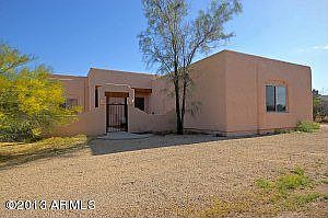TRADITIONAL SALE! 4 BR/2 BA custom home on paved roads w/circular drive & gated front courtyard all on 1.18 N/S acres. Surrounded by lush & mature desert trees offering extensive privacy & curb appeal! Back yard is fully fenced with plenty of room for pets & toys with RV parking. Maple cabinets & breakfast bar in island kitchen. New carpet in Great room and master. Split Master w/separate tub/shower & separate exit to large So facing covered patio. BR#2 (opposite Master) w/walk-in closet is ideal for office/nursery. Other 2 BR's split, share large second bath. 3rd bay of garage has been enclosed and air conditioned! The perfect space for a private office, artist studio, extra guests, man cave or, or!
