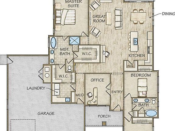 - Bath-Master, Bed-Master Main Level, Guest Room, Split Bedroom, Den/Office, Great Room, Double Vanity, Central Vacuum Plumbed, Walk-In Closet(s), Pantry, Kitchen Island, Quartz Counters, Number of Baths Main Level: 2
