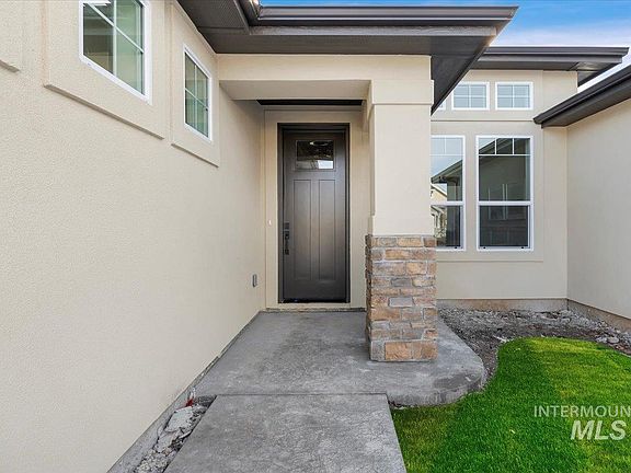 COMPLETION DATE 8-11-2023, the LAST Meridian Cassia RV by Venta Homes is full stucco making living big with less maintenance possible. Masterful touches include varied ceiling heights 9-10-12', quartz, hardwood, tile surfaces and NO fiberglass. This architecturally stunning home is visually interesting as seen in every surface from coffers to moldings to window size. The primary suite goes several steps beyond function with 2 CLOSETS and direct access to utility. The fantastic kitchen has as standard--Wolf-5 burner gas cooktop, double ovens and a SubZero refrig enough to WOW any cook or make you want learn-really! Throughout the home there is found ONLY European custom cabinetry includes soft close doors and drawers with full extension. Generous back patio is perfect to entertain, LOOK even a gas BBQ line. The RV bay has 12'x14' door is 40' deep, is finished, insulated, epoxied floor included as part of this over 1140 sq ft garage. ALL photos are similar, for information and subject to change w/o notice.