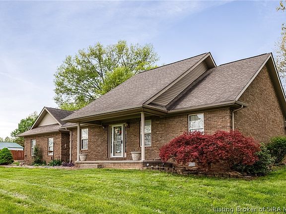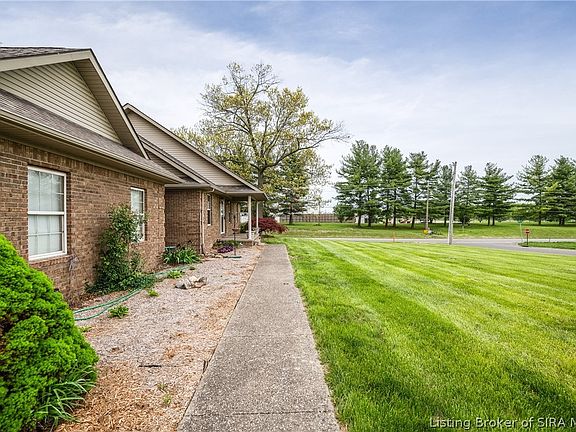 Huge corner lot in an established neighborhood close to everything Scottsburg has to offer! This all brick home has a covered front porch perfect for rockers. It offers a wide open space including an enormous living room with vaulted ceilings plus a great flow to the dining and kitchen area. Kitchen features tons of cabinet space, breakfast bar and stainless steel appliances. It is a great split floor plan with a very private owner's suite with double closets and double vanities. The other two bedrooms are good size and another bathroom is easily accessible in between them. Side entry two car garage. Large laundry room right off the garage on the side of the owner's suite. Newer roof, new security door and fenced in backyard. Plus the prettiest Japanese maple out front! Square footage, taxes, and school systems are to be verified by the buyer(s) or Buyer's Agent if critical to the buyer(s).
