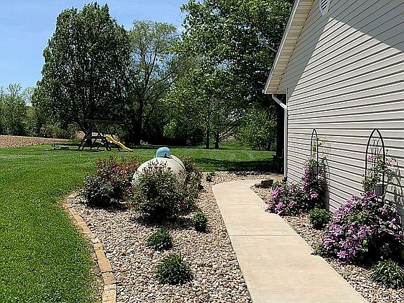 Wonderful country setting on almost an acre lot. 3BR/3BA in a great location near Int. 70 and in Triad School Dist. Finished walkout basement with large family room, bonus room in basement with closest , and large bath. Huge backyard features oversized patio. Play equip. stays. Whole house alarm through ADT. New roof and siding in 2019. On city water, but also has private well w/new pump. Dryer and stove are wired for electric or gas. Appliances stay. Call for more information or showing 618-781-8956