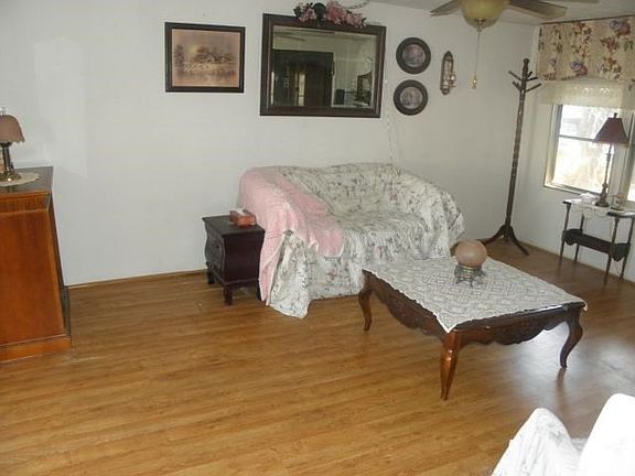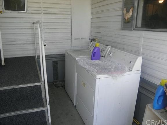 Cute Senior home located in beautiful Village Grove Estates. Just walk up the steps and come inside to experience this great little place. Inside you'll find a huge living/dining area that leads to the family room with wood flooring, faux fireplace, and ceiling fan. Just adjacent to this you'll find the big kitchen with breakfast bar, ceramic counter-top, and plenty of cabinet space. Now walk down the hall and you'll find the roomy bedrooms especially the gigantic Master bedroom with dual closets. The Master bathroom features a sunken tub to relax in after a long day playing shuffle board. This home also has a nice little enclosed patio area by the family room that's a great place to enjoy a good book and coffee. It also has it's own laundry area outside that comes with it's own washer & dryer. Now make your way outside, through the arch, and into your own yard with orange trees, and plenty of landscaping. This is a unique feature from almost all other parks...meaning you actually own your the land. This home has 1 of the biggest lots in the park. This great community also has it's own swimming pool, recreation room, and ponds. Make this a must show today before it's gone...