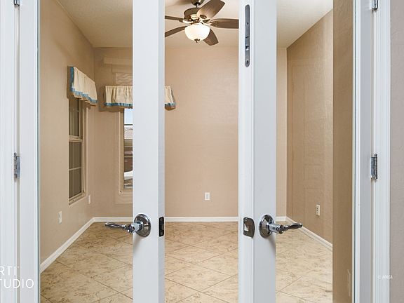 Sun City Mesquite Gem - Exceptional Value for the Price. Sun City Mesquite Gem - Exceptional Value for the Price! Well-maintained perfectly sized 2-bedroom, 2-bathroom plus Den,1,451 sq. ft. home with open floor plan and spacious living area. Den with French doors offers flexible space for office or guest room. Kitchen features stainless steel appliances, an added upgraded pantry cabinet with ten pull-out shelves, and double pull-outs in lower cabinets. Tile flooring throughout, luxury vinyl plank in primary bedroom, carpet in guest room. Primary suite includes double vanity, walk-in shower, and walk-in closet. Guest bedroom is split for privacy. Climate-controlled 2-car garage. Solar screens on main windows for energy savings. Extended covered patio with solid awning and paver flooring. Mature landscaping front and back. Enjoy resort-style amenities: 30,000 sq. ft. clubhouse, indoor/outdoor pools, hot tubs, billiards, tennis, pickleball, bocce ball, 18-hole putting green, fitness center, walking track, clubs, activities, and discounts at Conestoga Golf Club and 1880 Grille. Incredible Value-Won't Last Long! Make It Yours Before It's Gone!