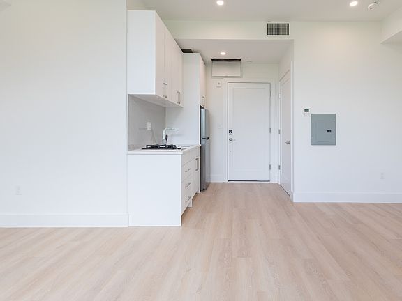 A short walk to Roxbury Crossing, this brand new building offers a shared laundry facility with large-capacity washers and dryers and a shared kitchen. The washers and dryers use a card system that accepts cash or credit card payments, eliminating the need for coins or tokens. The system provides convenience, efficiency, and a cashless payment option for users. The shared kitchen comes with gas ranges and large stainless steel commercial-grade counters and sinks, allowing multiple tenants to cook simultaneously in a fully equipped space.