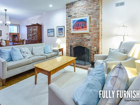 Fully furnished 2 story, 2 bedroom, 1.5 bathroom row house in Capitol Hill. The neighborhood of Capitol Hill offers a variety of restaurants, shops, Eastern Market, as well as easy access to public transportation. The house features a patio with a fenced yard, deck, and a basement. The living room has a brick fireplace, exposed brick walls, and hardwood floors. A gas stove, stainless steel appliances, granite countertops, and all the tools needed for cooking are provided in the kitchen. The 2nd floor has a den plus 2 bedrooms each with a queen-size bed. The office/den includes a sleeper sofa. Exposed brick walls adorn both bedrooms. The property is equipped with central air (heat and AC). Also includes a storage unit located outside. The Eastern Market Metro Station (Blue and Orange Lines) is 5 blocks. Walk Score: 88 (Very Walkable) Transportation Score: 81 Bike Score: 96 There is a 2.5% service fee and a departure cleaning fee. The property is fully furnished and includes all utilities including WIFI. There is a 2.5% service fee and a departure cleaning fee. Minimum stay requirement is 30 nights.