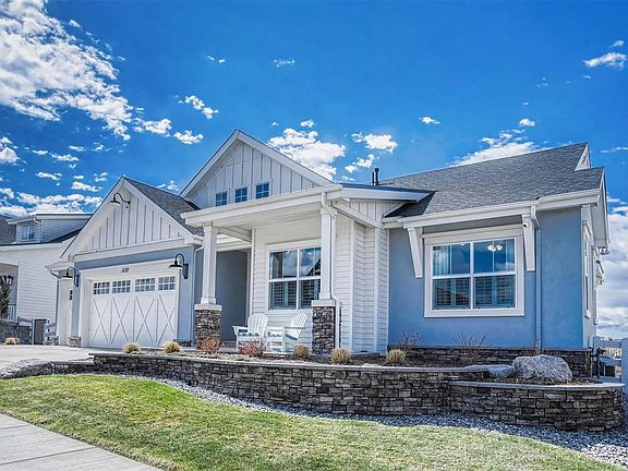 Tucked within a community a short distance from I-25 makes this commute to Denver a breeze. Views*Views*Views*Exquisite 4 bed, 4 bath, 3 car walkout ranch features stunning views of PP and the Air Force Academy. This semi-custom home is loaded with upgrades and celebrates main floor living at its finest. The gourmet kitchen seamlessly flows into the dining room and great room which features a stone to ceiling gas fireplace, cathedral ceiling with beautiful beams, hardwood floors, and a 12x19 covered deck perfect for entertaining. The MBed, office and guest bed w/full bath and walk-in closet and laundry are located on main floor. The 8' alder front door entry is both graceful and inviting. Main level has hand trowel walls, 8'tall doors, wood floors throughout except the master bedroom which features upgraded carpeting and pad. The gourmet kitchen is a chef's delight. Features include: large walk-in pantry, custom cabinetry, under cabinet lighting, soft-close doors and drawers with pull out shelving, gas range with convection oven along with built-in convection oven/microwave combo, fridge is upgraded and included. Perimeter countertops finished in upgraded Devon Cambria quartz, center island stands out w/upgraded Brittanica quartz countertops and has enough room to seat a large family. Lower level has a full bath, 2 large bedrooms with walk-in closets and a recreation room that is HUGE. No expense spared on the landscaping which features retaining walls, sprinkler and drip system, split rail fencing & a beautiful stone gas fireplace conveniently located for privacy by the Ponderosa Pines perfect for family evenings. Other features include: oversized insulated and painted garage w/utility sink, garage service door, radon system. Buyer to verify sq footage, schools, covenant information. HOA will increase to $170 monthly once the Community Center is complete.