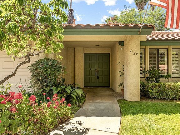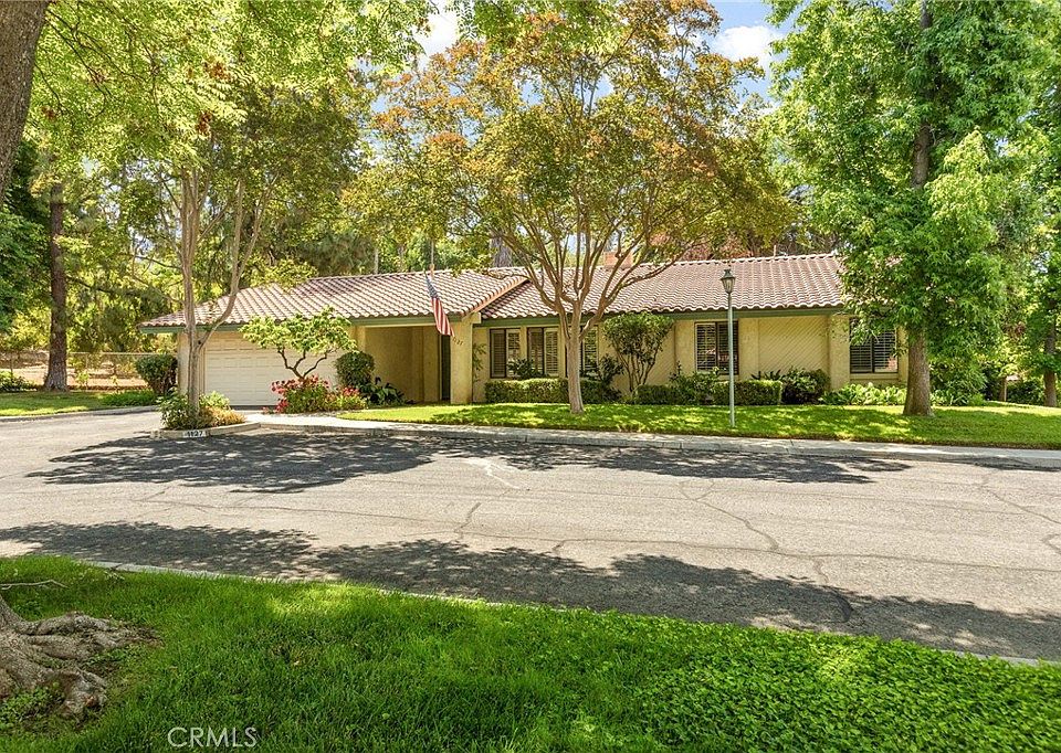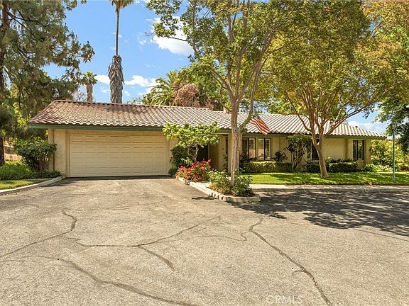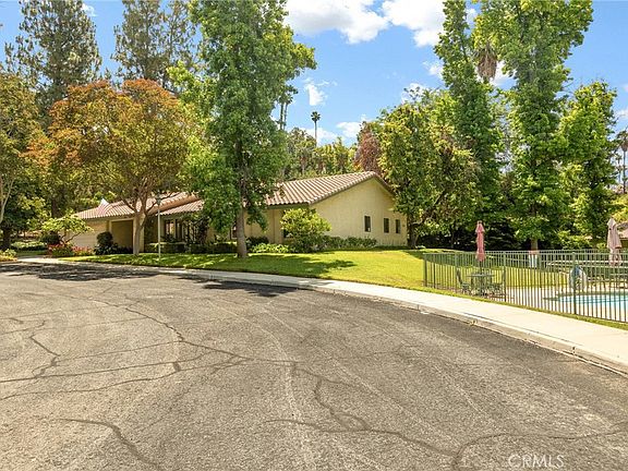 Popular development! Nicely planned 3 bedroom, 2 bath single story. Over 2000 sq ft of gracious living. Open floor plan with sizeable living room, separate dining and family room with soaring beamed ceiling. New Roof. One of only 14 units in the complex which backs on the Kimberly Crest orange grove.