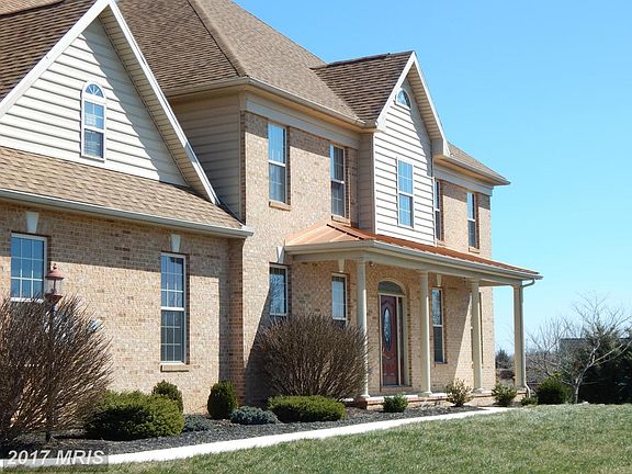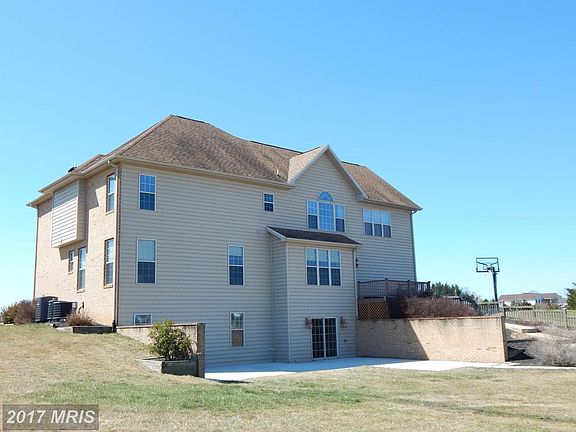 Need more space? Working from home? Conveniently located in Berkeley County WV and close to the MD line. Spacious and meticulously maintained, this one owner, custom built colonial ticks all the boxes. Loaded with upgrades on each floor including solid oak cabinetry in the kitchen with pull out drawers below for easy access. Corian countertops, double ceramic kitchen sink with disposal, under cabinet countertop lighting, and extra storage space in the pantry. All kitchen appliances are Samsung with smart technology; fingerprint resistant black stainless steel. Double wall oven includes a self cleaning steam cycle so you never have to scrub again. Also on the main floor, is a half bathroom with pedestal sink, great natural light and tile floors. There is a formal dining room with hard wood floors adjacent to the kitchen for easy entertaining. Two large rooms once used as family and living rooms are fully berber carpeted with double paned windows. Y staircase in foyer under chandelier leads to the roomy upstairs. You'll find a sitting area at the top of the stairs and 4 bedrooms, two with full bath en-suite. The other two bedrooms share a Jack and Jill bathroom with a full tub/shower combo. The primary bedroom has two walk- in closets, a jetted soaking tub, stall shower and Corian double sinks. Oak cabinetry under sinks for storage and neutral tile floors reflect the light from the crescent window above the tub beautifully. Basement is completely finished and fully carpeted with 9.5 foot ceilings! With outside access to the rear patio, this can easily be converted into an in-laws suite or additional living quarters complete with two bedrooms and a half bath with enough room to add a shower/tub. Plumbing is easily accessible in the current storage room to inexpensively install a kitchenette if desired. Builder plans reveal there is a door already framed just beneath the drywall. This would allow for access from a potential kitchenette to a living room area if utilized. The three car garage with automatic doors ensures plenty of room for your vehicles and lawn equipment to maintain the 5 acres and abundant vegetable garden. Along with the acreage, is a long freshly paved driveway, sidewalks leading to the covered front porch, rear Trex deck and outside spigots for watering your garden. Small outbuilding in the back yard with standard door and garage style door was used for yard equipment, but can repurposed as a she-shed, workshop or pool house in the future. There is even a permanently fixed basketball hoop in the driveway. If that wasn't enough, horses and chickens are welcome here too! The backyard has plenty of space to fence in. The possibilities here are endless!