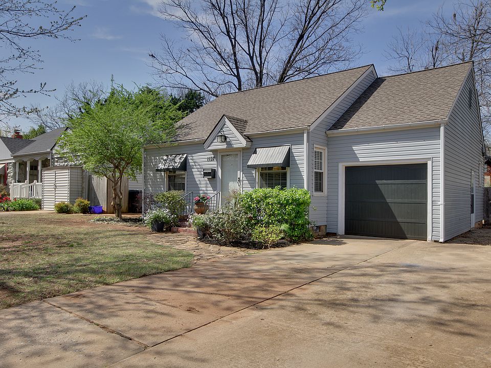 Desirable Brookhaven cottage features an amazing location, oversized lot! 2 large bedrooms, 1 Bath. Beautiful original hardwood floors throughout. Wood beams in living room, dining room & kitchen. Custom 2 inch wood blinds in living room and front bedroom. Enjoy your open patio area in your oversized backyard retreat. Exterior boasts mature landscaping, vinyl siding and guttering. Inside utility room and converted garage (not included in square footage) give you an excellent office space or easily converted back to attached garage. Fabulous location close to Classen Curve shops and restaurants, Whole Foods and convenient highway access!