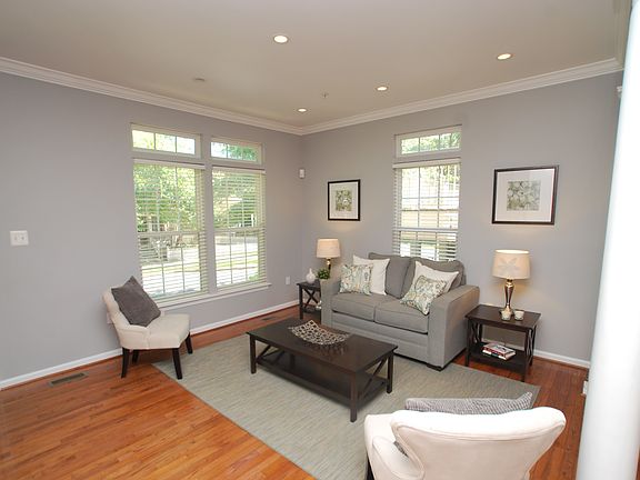 Exquisite FOUR level Tarquin END UNIT townhome in sought after Lakelands. These homes don't come on the market very often! Gleaming hardwood floors in the LR/DR and main level Family Room. Tray ceilings in the Dining Room. Large Gourmet Center Island Kitchen with Stainless Steel appliances, granite counter tops, ceramic tile flooring! Large eating area with double pantry. Family Room off kitchen with gas fireplace and doors exiting to deck and 2 car garage! (One of the few Tarquin's with a little backyard!). Upper Level features a large Owner's Suite with 2 walk-in closets, both with custom organizers! Owner's Super bath with separate shower and soaking tub and double vanity. The 2 add'l bedrooms also offer custom organizers in the closet. You will fall in love with the 4th level LOFT. This area is HUGE and perfect for an office/den (has 2 great storage areas in the loft!). The lower level features a large Recreation Room with separate playroom. In addition, there's a den, storage room, AND a full bath! 2 car garage with custom garage organizers. This is truly a special home, close to all the Lakelands amenities and shops! MUST SEE!