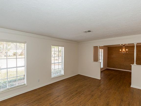Updated 4BR w/1ST FLOOR MASTER on HUGE POOL-SIZED culdesac lot in quiet tree-lined nbhd.Updates inc:AC/HEAT,ALL FLOORING,int/ext PAINT, KITCHEN(GRANITE countertps,STAINLESS appliances,incl.DOUBLE OVENS,Bosch 5 burner gas cooktop & dw),1/2 bath,blinds,gar.door opener.Fam.Rm w/gas logs & builtins.Lg secondary BRs w/walk-in closets,TONS OF STORAGE & vintage Tole chandeliers.Huge backyd w/MATURE FRUITBEARING TREES.Short walk to nbhd pool.Easy access to I-45,airport,downtown,Exxon campus & Woodlands.