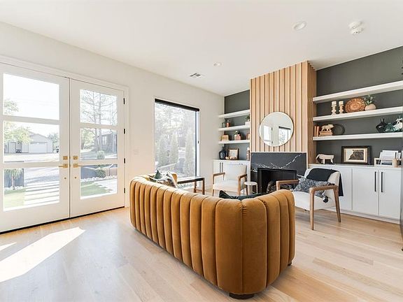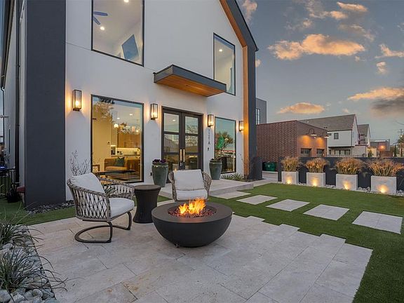 Meadowbrook Acres Transitional home with large windows and warm interiors offers a perfect blend of contemporary design, natural beauty, and homely comfort while still being both energy efficient & full of stunning high-end amenities. Before you enter the home you'll find a beautiful zero-maintenance front courtyard, surrounded by stucco walls with seating areas, lush landscaping and a gas fireplace. The entry is open to the spacious dining room and the living room which is centered around a stunning quartz & wood paneled fireplace. Enjoy a chef's kitchen with floor to ceiling cabinetry, Cafe appliances, quartz countertops, a large island and a gas range. Also downstairs- a flex room which cis presently a theater room but could easily be a fourth bedroom. Upstairs you'll find the huge primary bedroom featuring his and hers closets, an en suite marble bathroom with dual sinks and a soaking tub. Two additional bedrooms(both with en suite bathrooms) a large utility room and a wine bar complete the second story. White oak hardwood flooring & tile throughout, designer lighting and tasteful finishes. Just steps from Classen Curve and Nichols Hills Plaza!