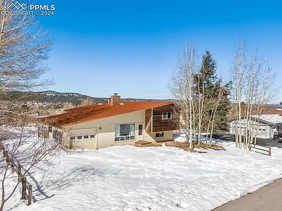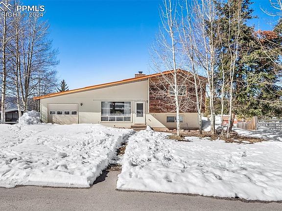 "Immerse yourself in the tranquil mountain ambiance of Forest Edge Park, situated in the scenic Woodland Park. This meticulously designed tri-level abode, brimming with character, invites you to rediscover its charm and breathtaking views of Pikes Peak and the Rocky Mountains. The inviting living room, graced with a picturesque window and a cozy brick fireplace featuring a wood stove insert, is suffused with natural light, offering a serene sanctuary. While the kitchen presents an opportunity for modernization, its expansive layout seamlessly integrates with a spacious dining area, leading to the outdoors where the breathtaking panorama of Pikes Peak awaits. Ascend to the upper level, where three bedrooms overlook the living room, providing a peaceful retreat for rejuvenation. The lower level boasts an expansive family room, accompanied by a convenient three-quarter bathroom and a well-appointed laundry room with direct access to the backyard. Nestled on a sprawling .38-acre lot, this property provides ample space for all your recreational aspirations. With close proximity to the Rampart Range entrance to the Rocky Mountains, as well as being just 18 miles from the vibrant city life of Colorado Springs and less than 30 miles from the historic charm of Cripple Creek and Victor, this mountain retreat offers a perfect blend of tranquility and convenience, awaiting your personal touch to unlock its full potential.