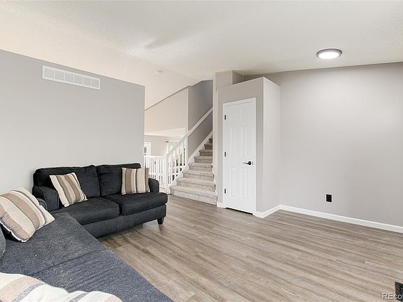 AMAZING OPPORTUNITY! Welcome home to this charming and updated home located in the desirable Founder's Village neighborhood! The property sits backing to greenbelt with stunning partial mountain views, , along with a greenbelt on one side and access to the extensive walking trails right outside the property! Inside, you're welcomed with brand new luxury vinyl flooring (just installed) throughout the living room and family room. The cozy front living space lets in ample light and the kitchen features tile flooring, vaulted ceilings and updated stainless steel appliances, complete with double oven range and updated backsplash. Newer paint inside compliments the brand new carpet just installed across the entire upper floor. Upstairs are three bedrooms, a full bathroom for the secondary rooms and a primary bedroom with walk-in closet and en-suite 3/4 bathroom. An unfinished basement allows for your plans for an extra room or rec room. Plenty of south facing sunshine spills across the large yard with a relaxing patio, all awaiting your finishing touches for the summer! It's hard to find a property like this right now, don't forget about the very low HOA that provides trash/recycling and access to a pool, clubhouse, and tennis courts! Conveniently located near Mitchell Gulch Park, I-25, and all the shopping and dining options in Downtown Castle Rock and beyond. Set a showing today - don't miss out!